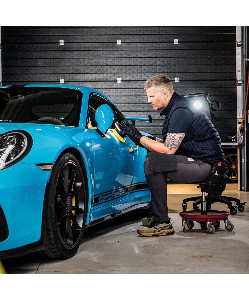 Prin montarea lanternei de lucru direct pe mașina de lustruit, aceasta este mai aproape de zona de lucru, permițându-vă să detectați eficient orice imperfecțiuni.