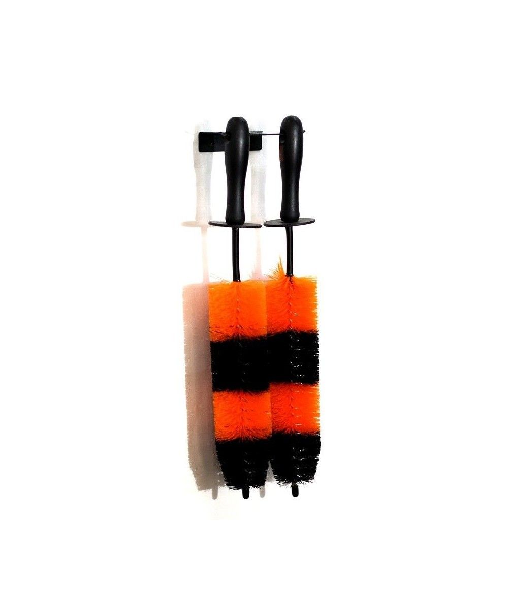 Facut din placa metalica de 1,5 mm, suporta perii sau alte echipamente cu greutatea de pana la 0,5 kg. Bratele inguste ale manerului se potrivesc cu majoritatea gaurilor din manerele periilor. Distanta dintre brat si perete este de 6.5 cm, astfel incat si cele mai mari perii vor avea suficient loc in acest suport..