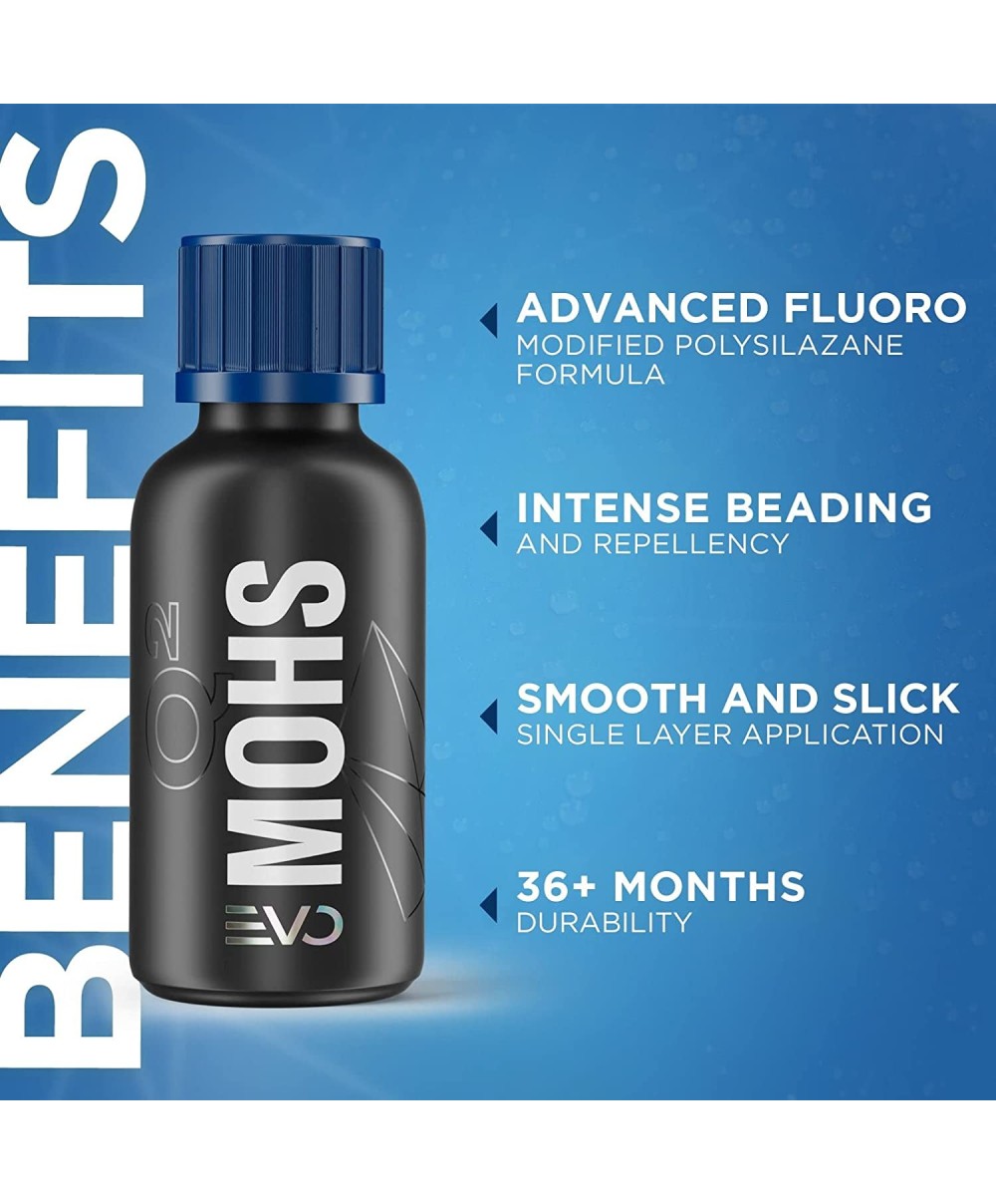 Tehnologie unica! Q² Mohs EVO foloseste polisilazani modificati cu fluor pentru prima data in industria de ingrijire a masinilor. De ce este atat de important? Modificarea polisilazanilor in fazele precursoare aduce beneficii enorme la toate nivelurile: durabilitate, rezistenta chimica si usurinta in utilizare. Rezultatul este un strat ultra ceramic care creeaza un scut de sticla in jurul masinii.