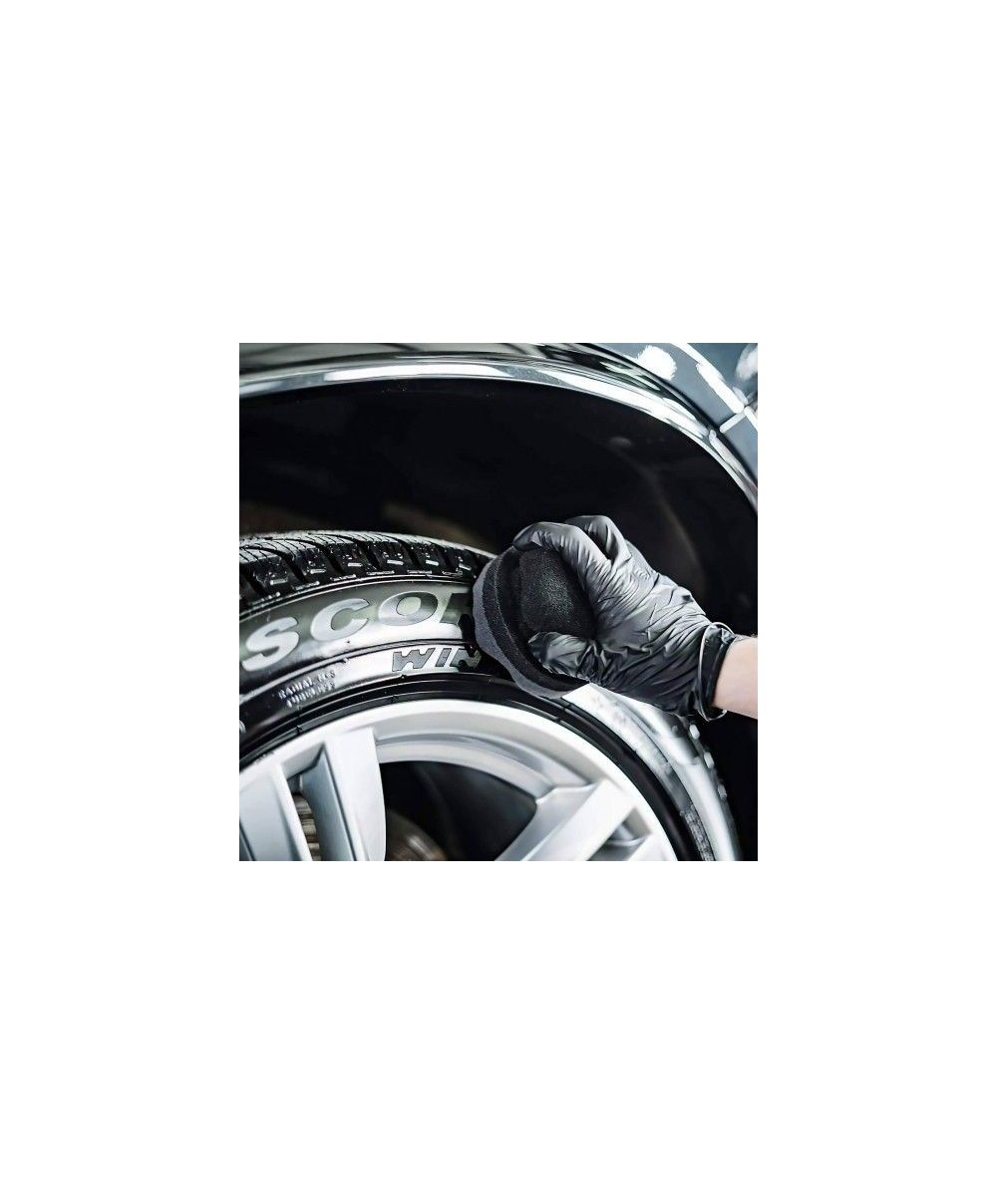 Solutie pentru protectia si intretinerea anvelopelor si a suprafetelor din cauciuc. Creeaza un strat care protejeaza impotriva conditiilor meteorologice daunatoare, precum si a poluarii rutiere. Un amestec catifelat de ulei de nuca de cocos emolient si polimeri organosilicon protejeaza si hraneste suprafetele de cauciuc, oferindu-le un aspect anti-static, hidrofob si satinat. Produsul este eficient si usor de aplicat cu o aroma placuta de ciocolata.